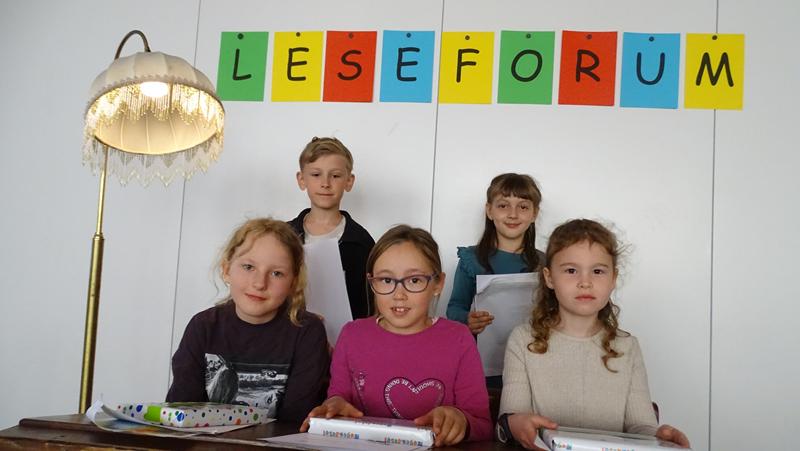 Am 29. April fand unser jährliches Leseforum statt. Alle Klassen haben in den letzten Wochen ihre besten Leserinnen und Leser im Unterricht ermittelt. Diese durften nun auf der Bühne vor Publikum zeigen, wie toll sie lesen können. Das war sehr aufregend. Aber die Kinder haben toll geübt und können zu recht sehr stolz auf sich sein. Angelehnt an unsere Zirkusprojektwoche im März, wurden Texte zum Thema Zirkus vorgelesen. Das Publikum lauschte gespannt den lustigen Geschichten von Zirkus Petrelli und Zippel, dem Gespenst. Am Ende zeigten alle Siegerinnen und Sieger stolz ihre Urkunden und Buchpreise.