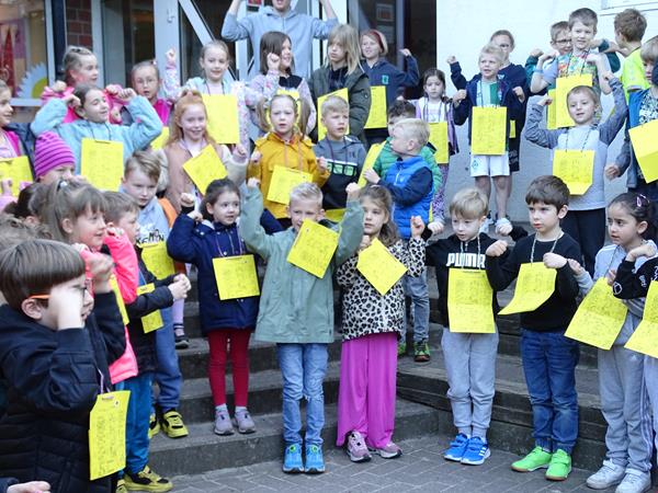 Schönes Wetter, tolle Stationen, motivierte Kinder und viele helfende Eltern: Das war das Spiel- und Spaßfest am 8.5.2024. Zu Beginn sangen alle Kinder der Eingangsstufen “Singen ist ‘ne tolle Sache” und stimmten sich und die Erwachsenen auf einen schönen Tag ein. Mittags waren alle müde gespielt und zufrieden.