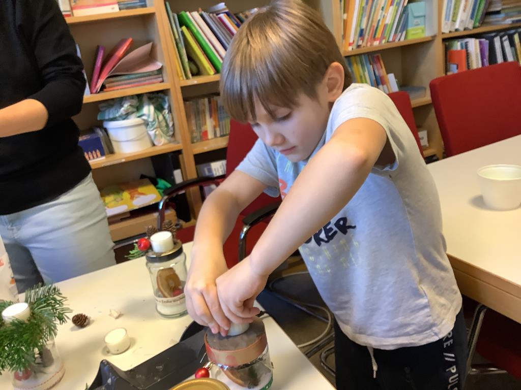 Wie in jedem Jahr vor dem 1. Advent, bastelten die Kinder der ganzen Schule, um sie schön weihnachtlich zu schmücken. Viele Eltern hatten ihre Hilfe angeboten und unterstützten die Kinder und Lehrkräfte bei den einzelnen Bastelangeboten. Vielen Dank dafür! Nun kann die Adventszeit kommen. Der Chor probte passend dazu in der fünten Stunde noch einmal für den Auftritt am Sonntag.